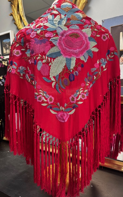 Mantón Bordado Color Rojo con Flores 60€