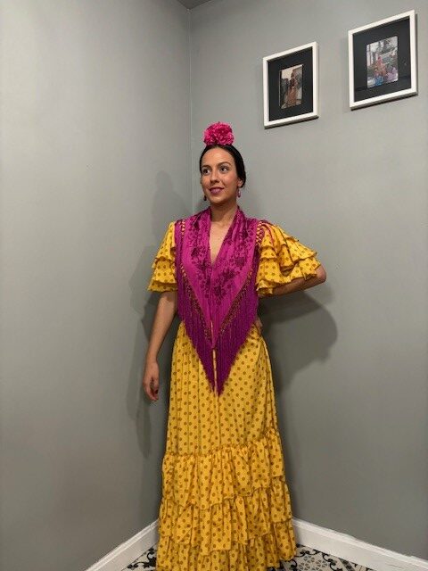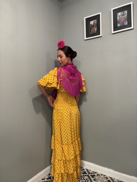 Vestido Mostaza de 3 Volantes con Lunares